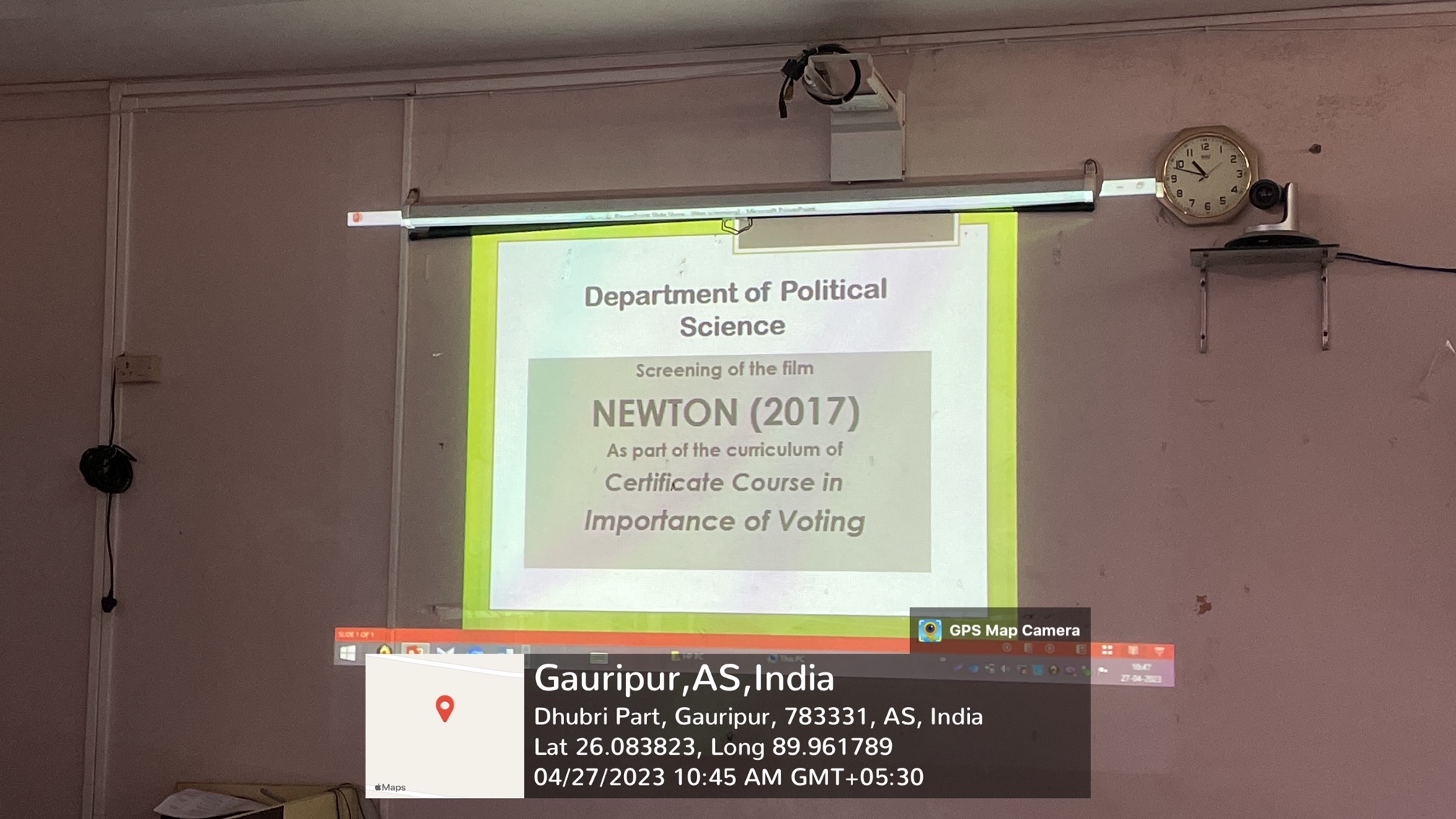 | 1 | Film Screening | As part of the Certificate Course in Importance of Voting, the film Newton (2017) was screened as it | 2023-04-27 | View File |