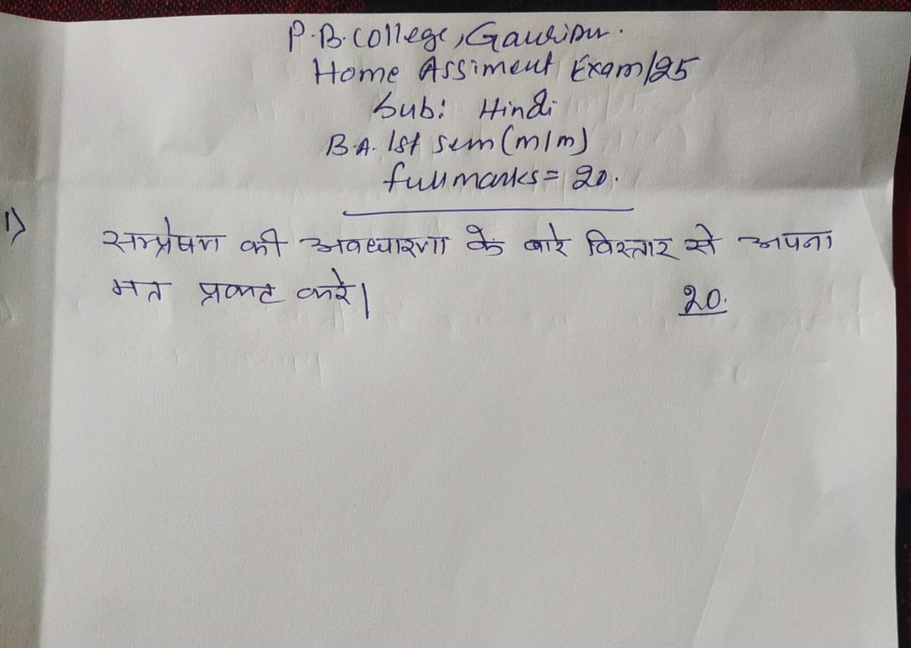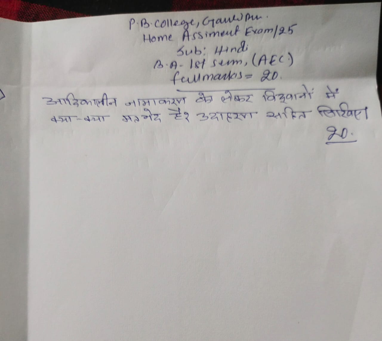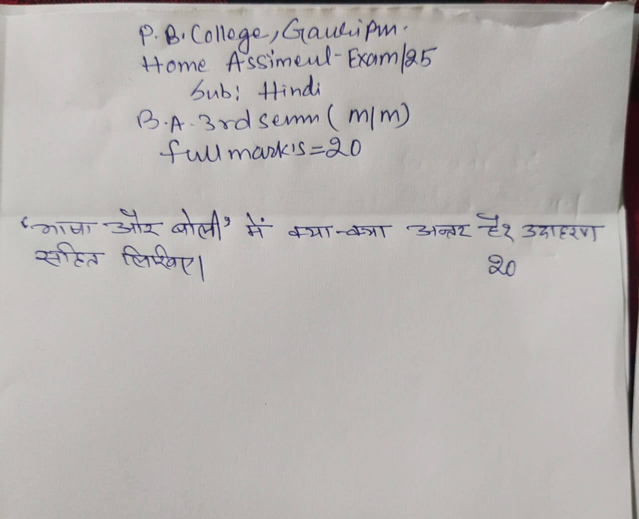 The department of Hindi was set up with a mission to import higher education on Hindi literature from higher secondary level to Degree level in general while imparting higher education on Hindi literature. The department is at present running with a mission to develop moral aspect of the students. The department is going to open the Major course if the faculty is available in the department for the better improvement of the students. The department also gives due stress for all round development of the students in general so that the students can serve the Society as well as the country in general and the college in particular.