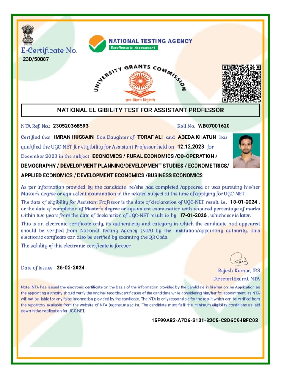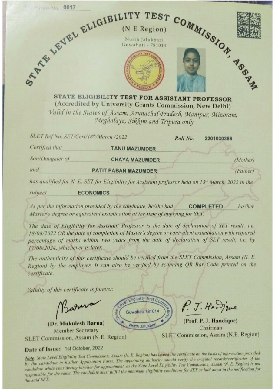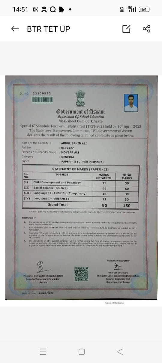 State Level Police Recruitment Board, Assam result of Aziar Rahman